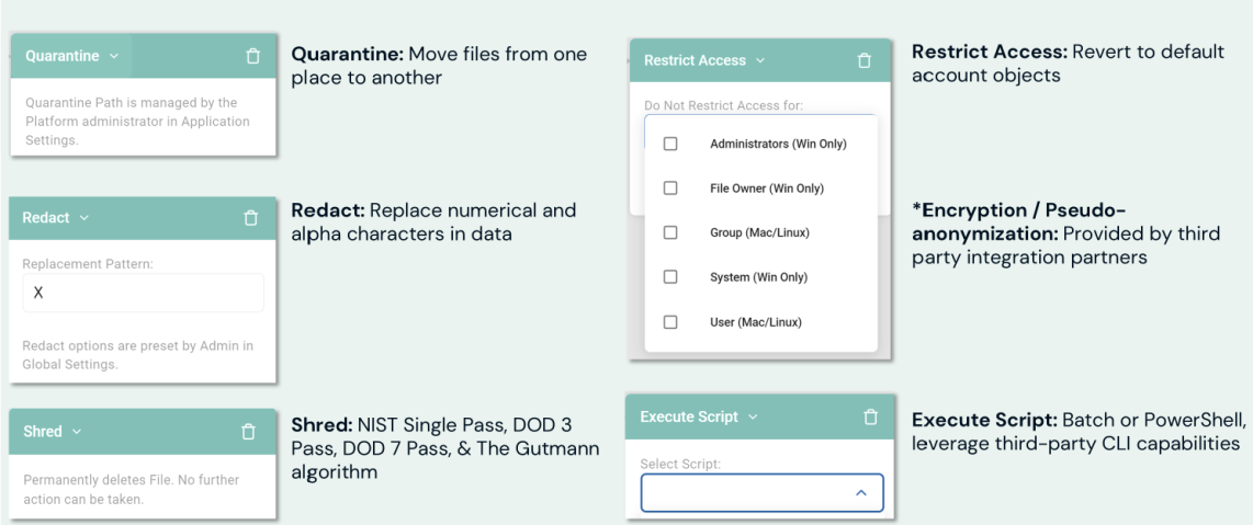 - As a result of the answer to the question (yes or no), additional actions are taken (quarantine/redact/shred sensitive data, notify a user of the sensitive data discovered, etc.)