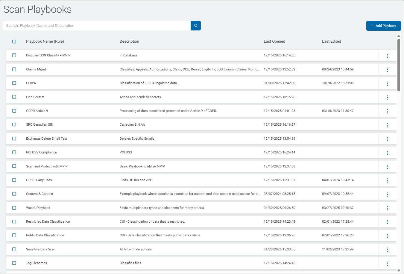 - A single sensitive data scan often contains multiple playbooks