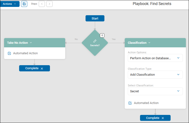 - Playbooks can be very simple, containing only one decision point and two paths ('No' and 'Yes'). See the screenshot below.