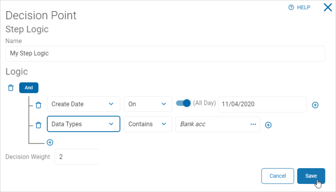 - In the Decision Weight section, use the numeric up-down control to select a weight for the logic statement.