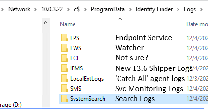 - C:\ProgramData\Identity Finder\Logs\SystemSearch