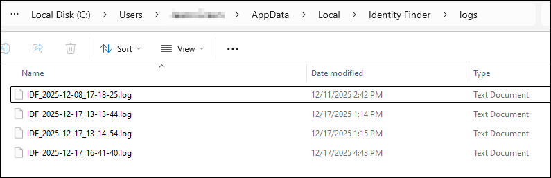 - C:\Users\<JohnSmith>\AppData\Local\Identity Finder\logs