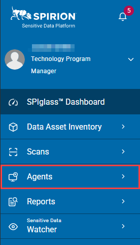 - From the left side navigation menu, click Agents.
