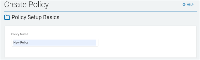 - On the Policy Setup Basics screen, enter the Policy Name and click the Next button.