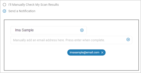 For example, a playbook action (after a scan completes) may be to notify specific data found by a scan to a specific department for review and remediation.