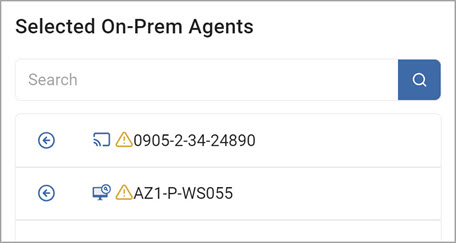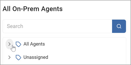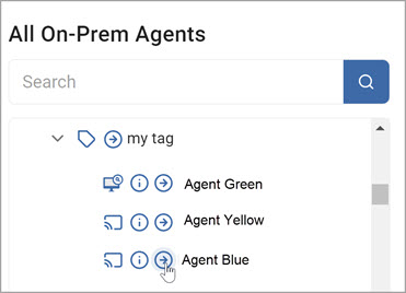 - To select an Agent, or a Tag which contains multiple Agents, click the right-pointing arrow next to the Agent or Tag name. This moves the Agent or Tag (collection of Agents) over to the Selected On-Prem Agents field.