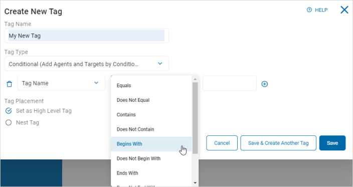 In addition to the information below, to see examples of Tags as well as details about the available Conditional Tag settings and operators, see Tag Examples.