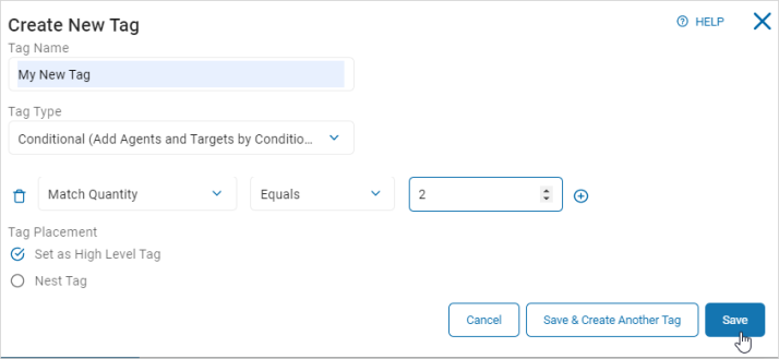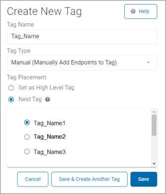 - Nest Tag: Select a high-level (parent) tag to nest this new tag under as a child tag.