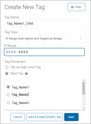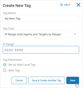 - Select IP Range from the Tag Type drop-down list.