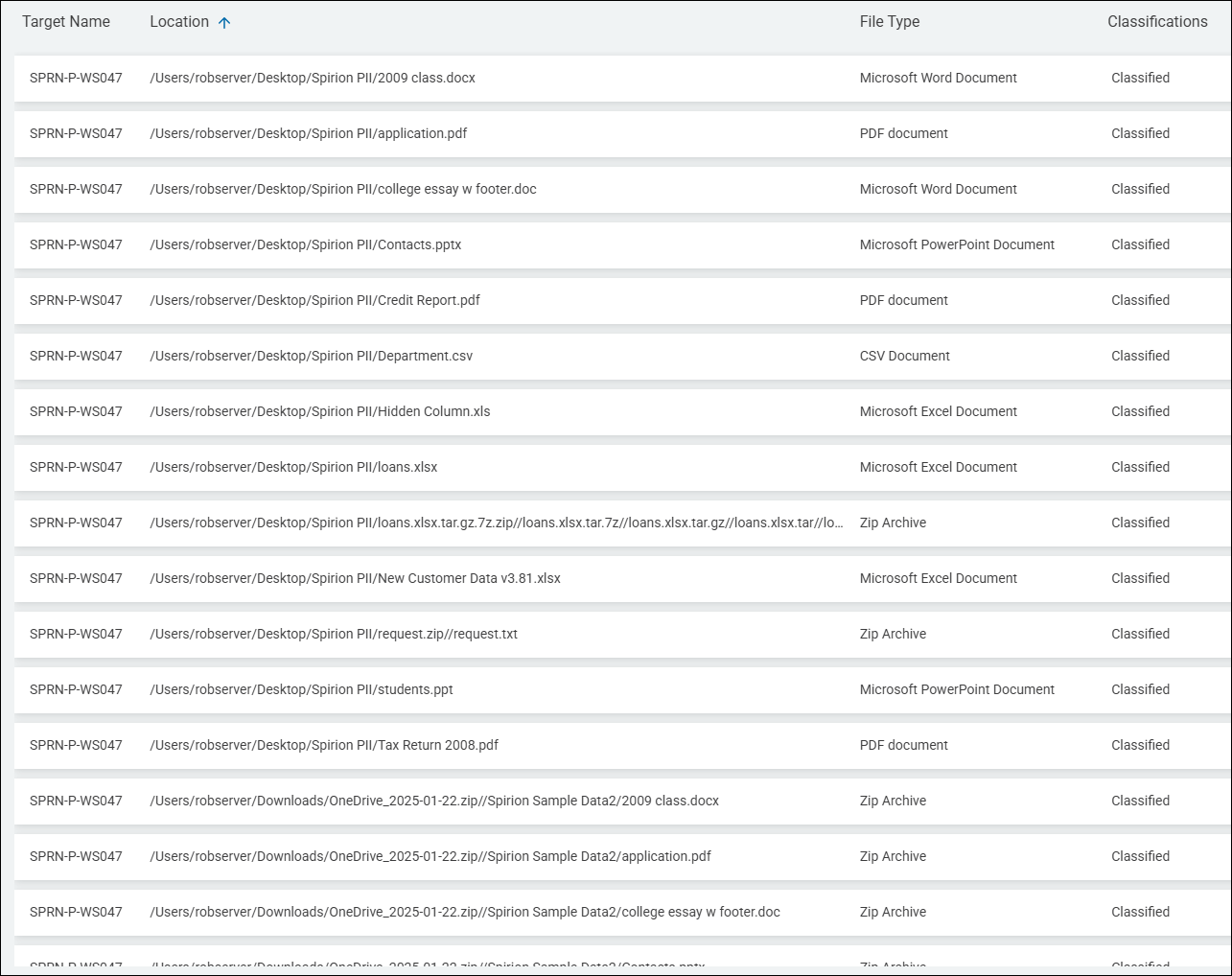 This report publishes a summary of individual locations with classification labels. As many users require accuracy and visibility into their sensitive data location classifications, this is a very important and often used report.