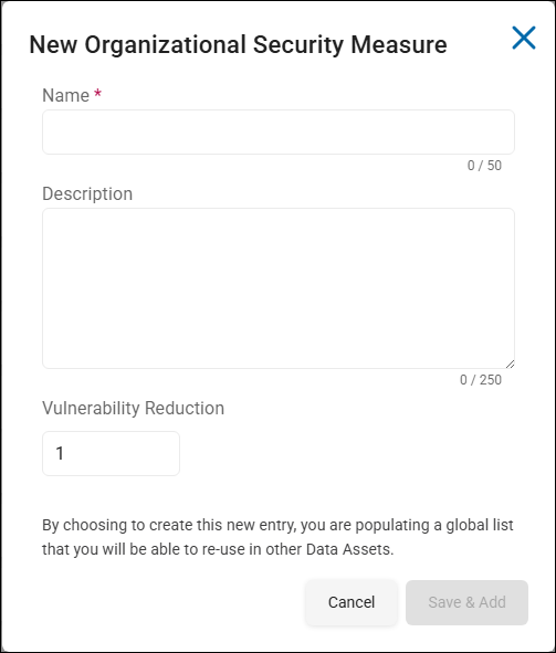 - Vulnerability Reduction: Type the vulnerability score between 1 to 10. This is a measure of how much vulnerability in your organization is reduced by this security measure.