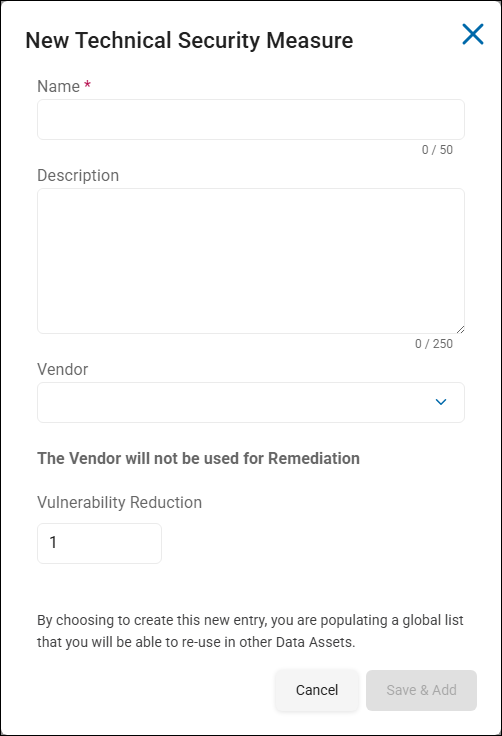 - Vendor: Select the vendor who is providing the security measure from the drop-down menu.