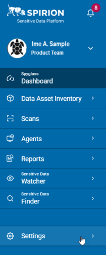- From the left side navigation menu, click Settings at the bottom of the menu.