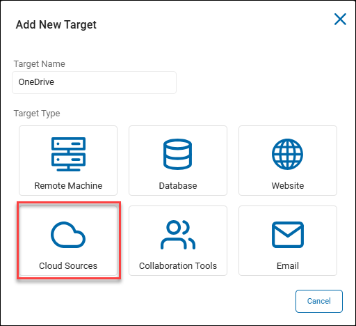 - Click the tile of the Cloud source you wish to add as a Target: