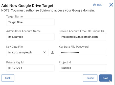 - You will use both later when configuring your Google Drive target in the Sensitive Data Platform console. See P12 Key Download