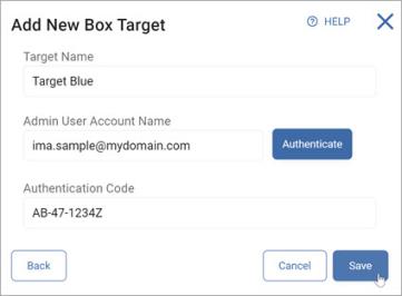 - Enter the name of the Target in the "Target Name" field. Make the name descriptive by including identifiers such as the Cloud source name, location, department, status, and/or date.