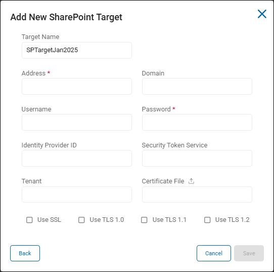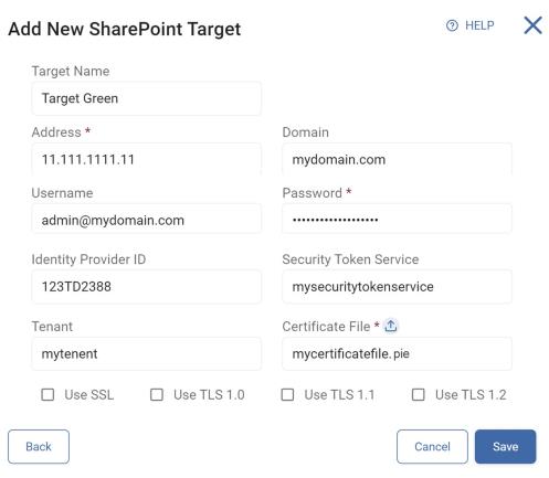 Use the following steps to add a new SharePoint/SharePoint Online Target: