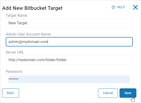 - In the "Add New Bitbucket Target" pop-up window, enter the following information: