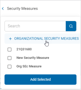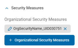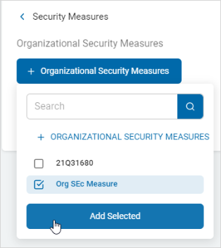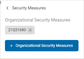 - The selected security measure appears in the Organizational Security Measures section.