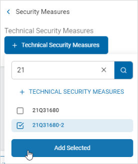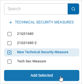 - Select the technical security measure from the list and click Add Selected.