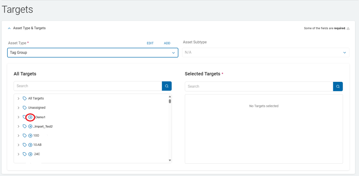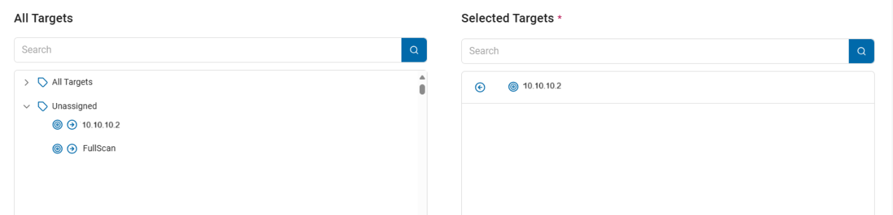 - Selected Targets: To move a Target back to the All Targets field, click the arrow next to the Target name. This field is required.