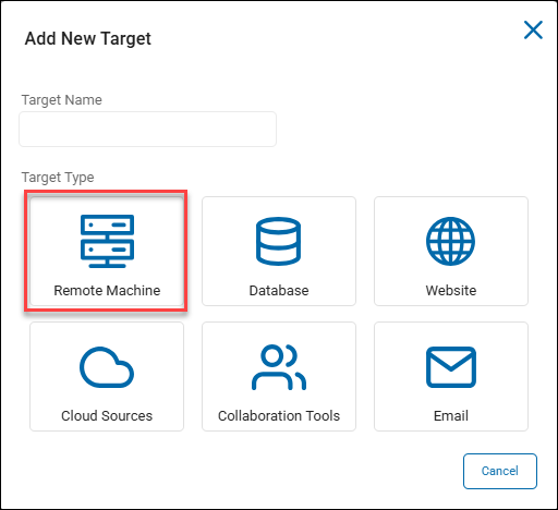 - Under Target Type, click the Remote Machine tile to proceed or the Cancel button to discard.
