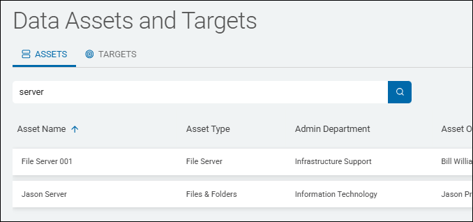 - For example, entering the term "server" displays all assets that contain the term "server."