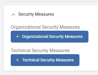 Peform the following steps: - Click the blue + Organization Security Measures button.