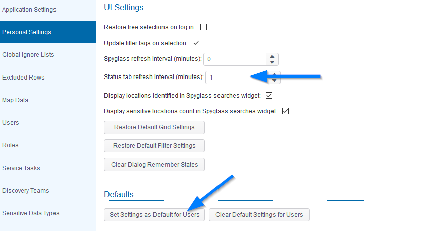 Adjust the Auto Refresh Interval on the Personal Settings tab in the Spirion console (web interface)