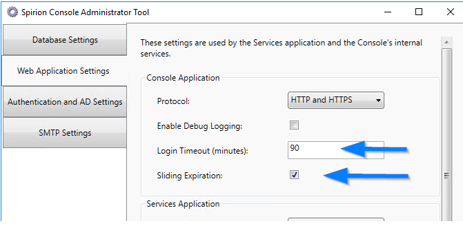 - Adjust the Login Timeout (minutes) value (it is in minutes)