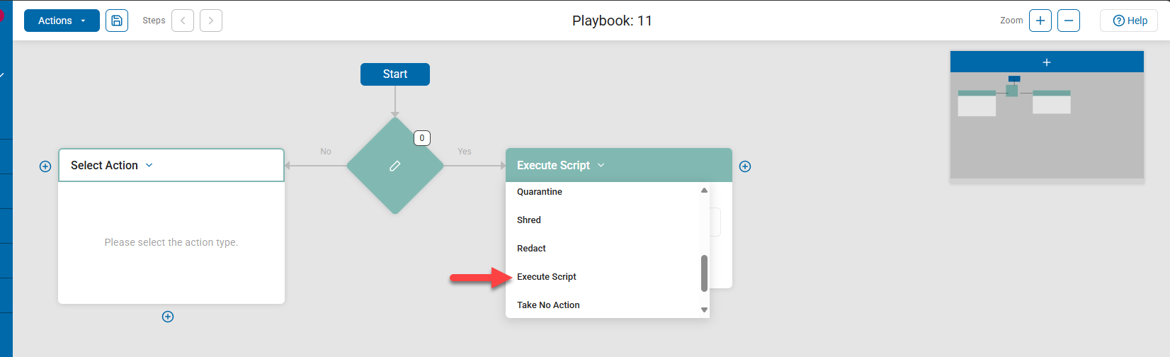 - In the Action box, click the drop-down menu and select Execute Script. See the screenshot below: