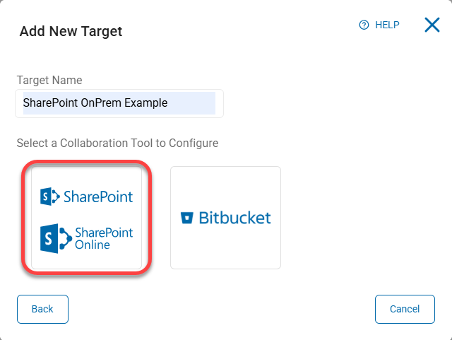 - Adding a SharePoint On-Premises Target