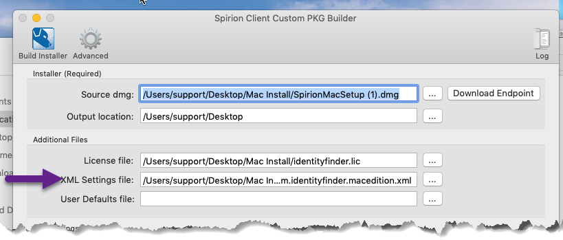 -outputLocation "/Users/macuser/IdentityFinderInstaller"
