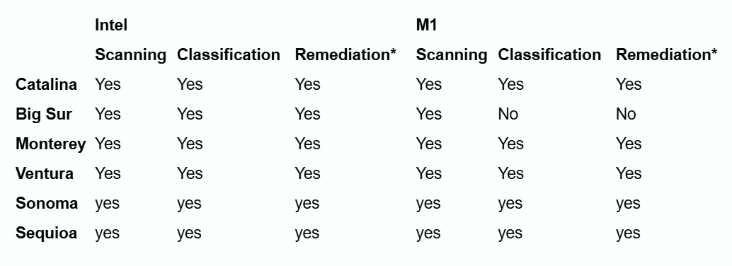macOS Support for Intel Scanning and Spirion Sensitive Data Platform Features