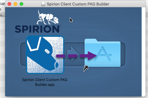 - Drag the Spirion Client Custom PKG Builder.app file (the picture of Poochie) over to the light blue app folder.