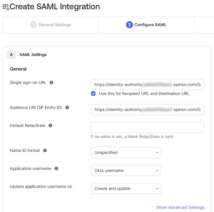 - Other settings can remain as default. However, some organizations may require these settings to be filled in in a specific way. Consult your Okta Admin just in case.
