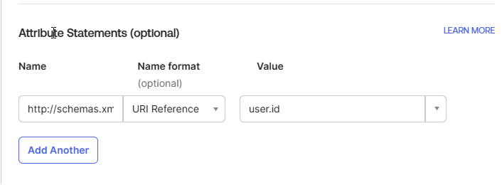 | Last Name | http://schemas.xmlsoap.org/ws/2005/05/identity/claims/surname | user.lastName |