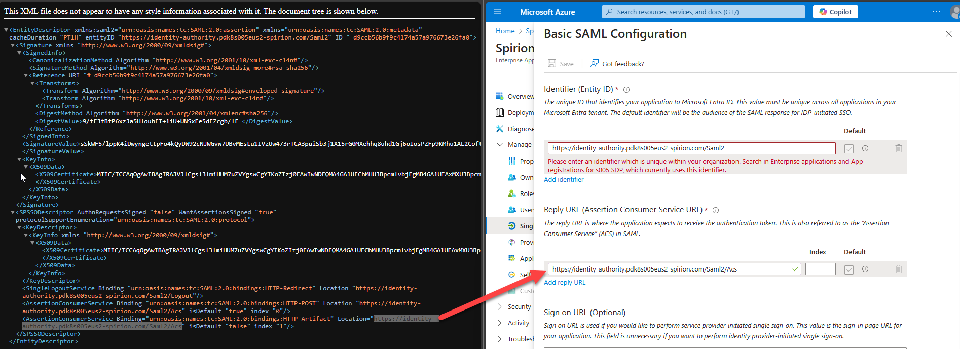 - Copy the URL at the end of the file that is in line with AssertionConsumerService binding.