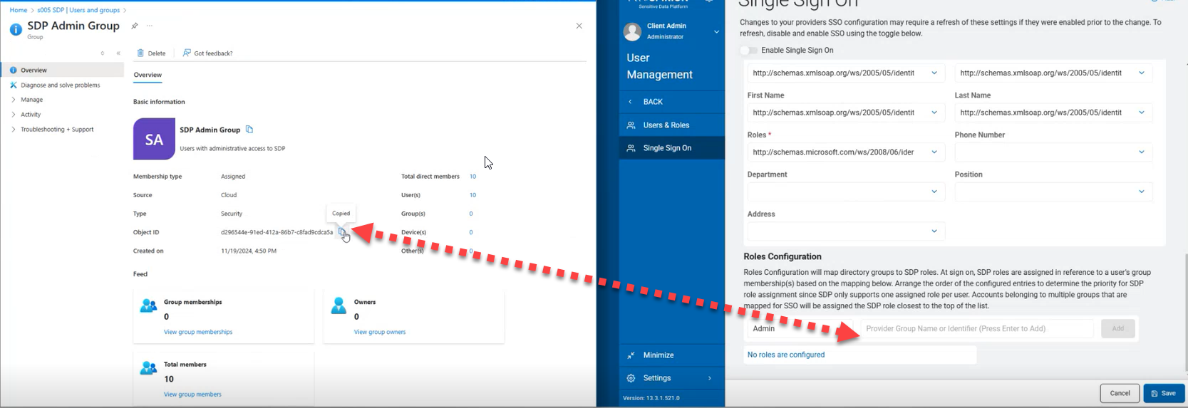 - Paste the Object ID into the box in the Spirion Sensitive Data Platform console under Roles Configuration and assign it a role in the drop-down box.