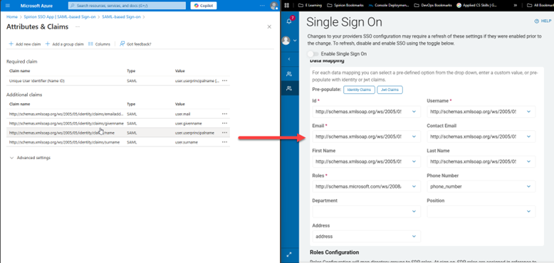 - Note: Claims must match exactly between Entra and the Spirion Sensitive Data Platform console or they will fail.