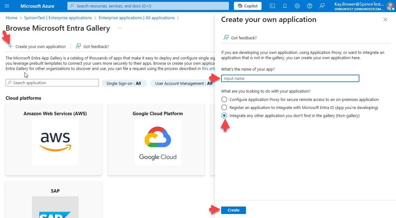 - Give the App a name and select the radio button "Integrate any other application you don’t find in the gallery (Non-gallery)".