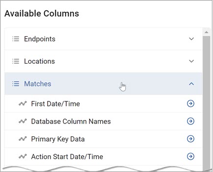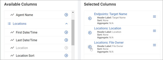 - Use the right-pointing arrows to move one or more data types to the Selected Columns section.