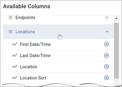 - On the "Columns Setup" screen in the Available Columns section, choose from the following to include in your report: