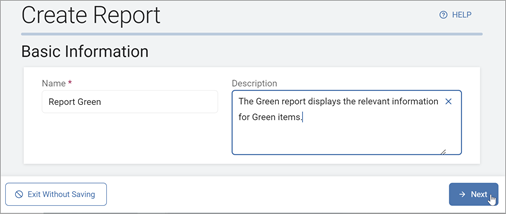 - Description: Enter a short description of the report.