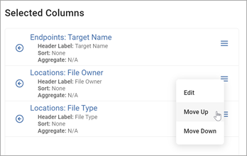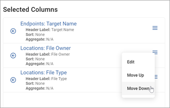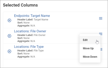 - In the Select Columns section, hover over the slide drawer navigation icon for the Column you want to edit.