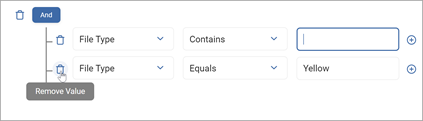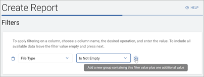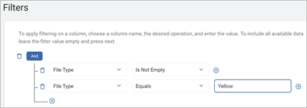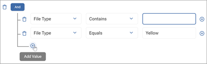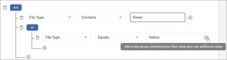 - Use the plus icon to the right of a filter statement to add a new group containing the file plus one additional value.