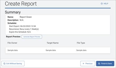 - Click the Finish & Save button to save the report, Previous button to return to the previous page, or Exit Without Saving button to discard.