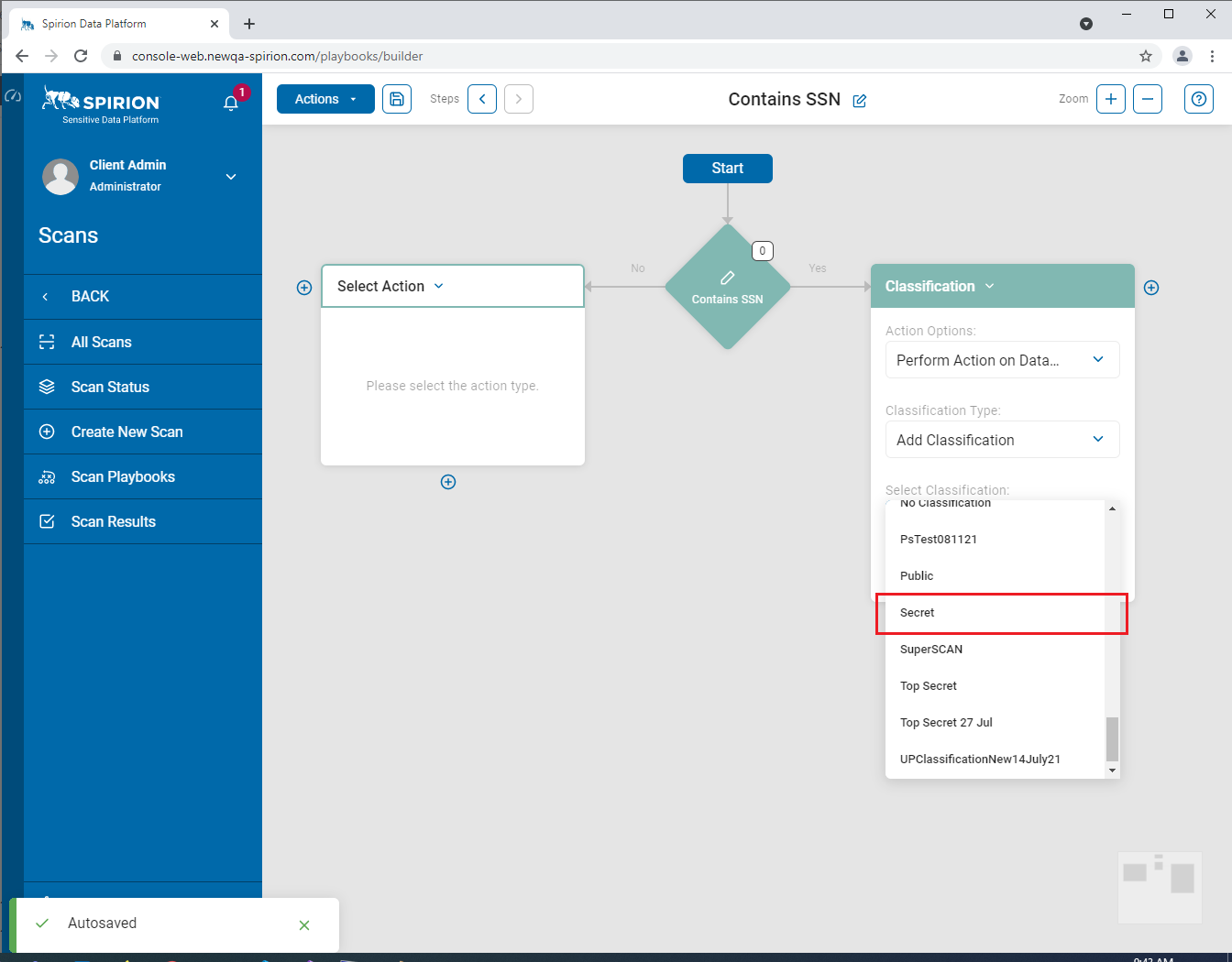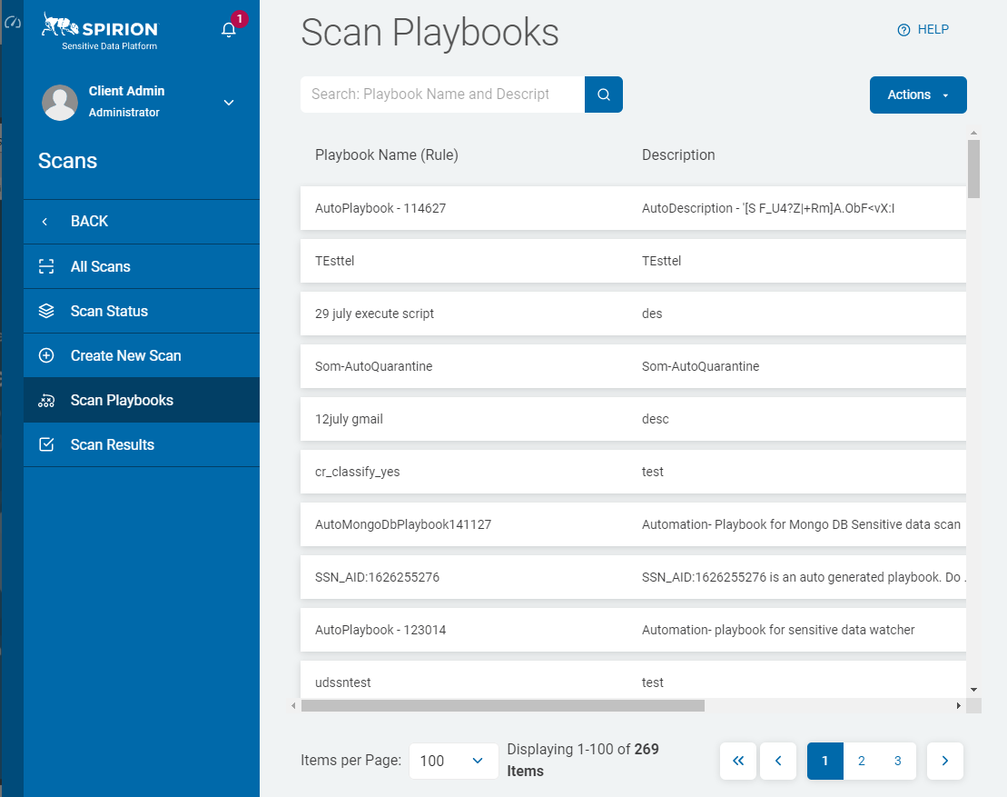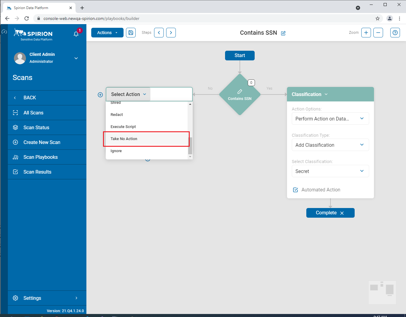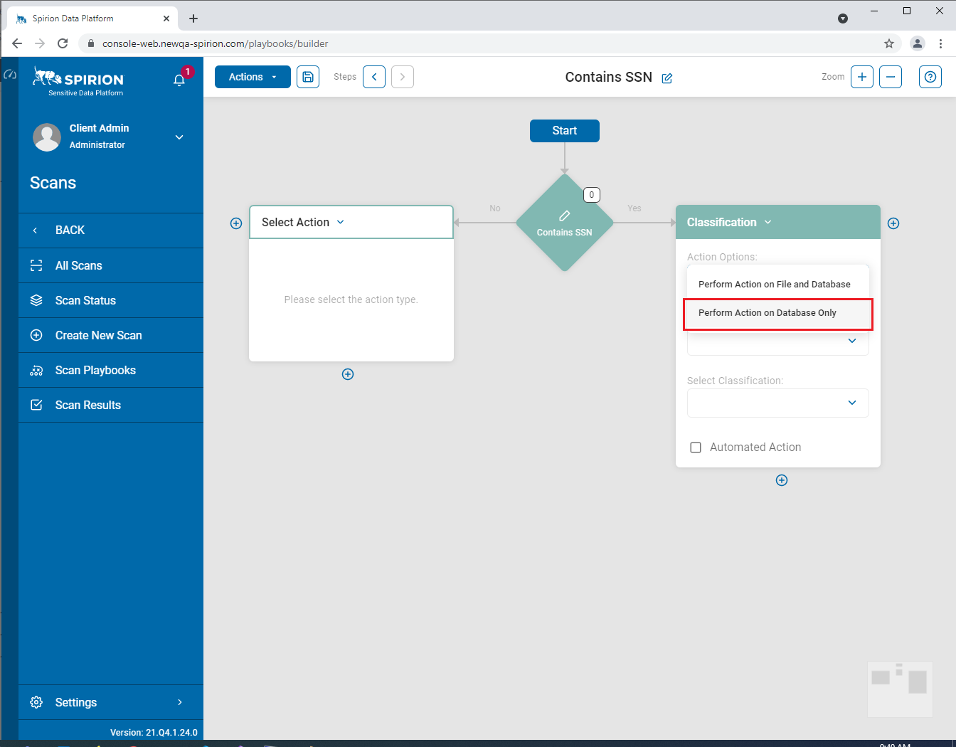 Recall that Scan Playbooks are a kind of decision tree which instruct Spirion Sensitive Data Platform on what to do during scans, such as quarantine, shred, or redact sensitive data. For more information about Scan Playbooks, see How to Add a New Scan Playbook.