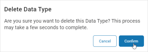 - In the Delete Data Type pop-up window, click Confirm to permanently delete the Data Type or Cancel to discard.