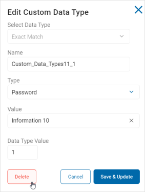 - In the Edit Custom Data Type pop-up window, click Delete.
